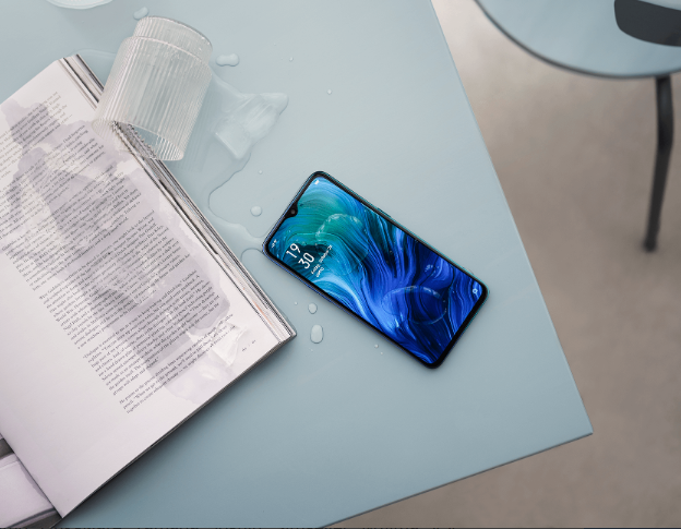 Điểm nhấn ấn tượng đầu tiền về OPPO Reno A là thiết kế màn hình giọt nước kích thước 6.4 inch, độ phân giải Full HD, tỷ lệ màn hình so với thân máy đạt 91%. OPPO cũng không quên trang bị lớp kính cường lực Gorilla Glass 5 để bảo vệ màn hình.