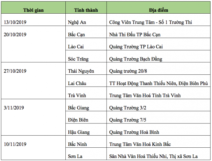 Lịch trình chi tiết chương trình “Honda– Luôn vì bạn” trong tháng 10-11-12 năm 2019:
