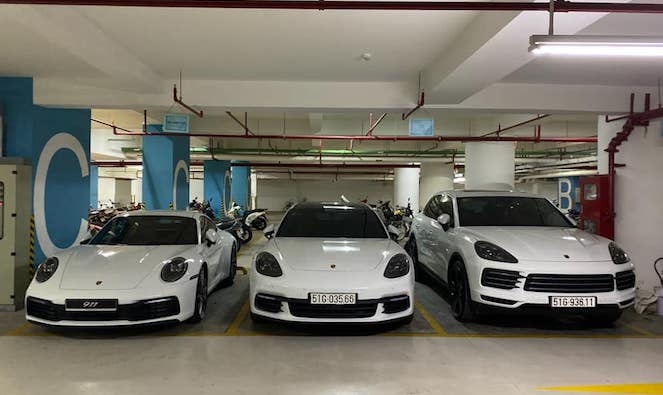 Bộ ba Porsche của vợ chồng Cường Đô la - Đàm Thu Trang.