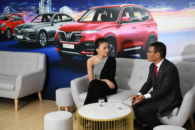 Trước những chia sẻ từ phía Ngô Thanh Vân, ông Võ Quang Huệ - Phó Tổng Giám đốc VinGroup tỏ ra rất vui và đồng tình. Tính đến thời điểm hiện tại, VinFast là thương hiệu sản xuất ô tô con thương mại Việt Nam đầu tiên và duy nhất góp mặt trong sự kiện Vietnam Moto Show.