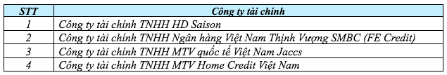 Danh sách các công ty tài chính áp dụng trong CTKM: