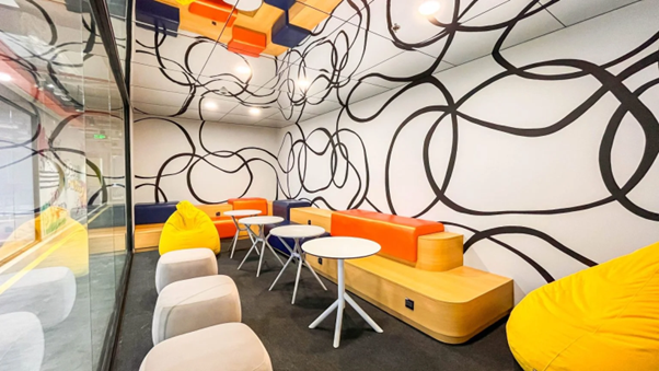 Cụ thể, The Sentry sử dụng các tông màu xanh dương và xanh lá có khả năng làm dịu tâm trí, rất thích hợp cho khu vực làm việc cần sự yên tĩnh và tập trung cao. Ngược lại, màu vàng và cam lại khơi gợi sự sáng tạo và năng lượng, hoàn hảo cho khu vực làm việc nhóm hoặc khu vực lounge.