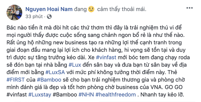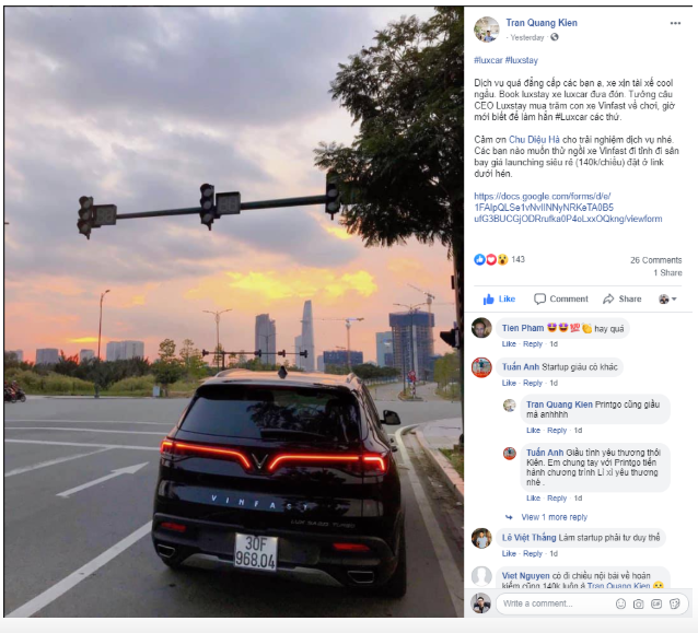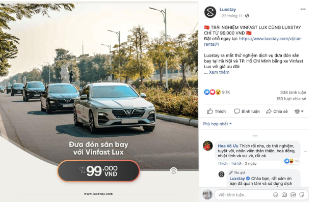 Xuất phát với mức giá khởi điểm 99.000 VNĐ/chiều cho dịch vụ đưa đón sân bay, đặc biệt còn sử dụng dòng xe Vinfast cao cấp, không quá ngạc nhiên khi lượng booking lớn đổ về vượt quá khả năng cung cấp dịch vụ của Luxstay. Được biết, với những chuyến không còn Vinfast Lux để đón khách, Luxstay sẽ cung cấp các dòng xe khác để đảm bảo việc di chuyển của khách được thuận tiện, theo đó, những khách hàng may mắn đầu tiên nhanh tay đặt chỗ và được trải nghiệm Vinfast đều có những review khá chi tiết trên trang cá nhân.