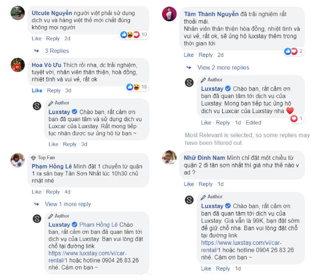 Rất nhiều comment của cộng đồng mạng cho biết đã trải nghiệm được dịch vụ, kèm theo đó là các comment “băn khoăn” không hiểu vì sao giá lại hấp dẫn tới vậy cũng như muốn tìm hiểu sâu hơn về chương trình ưu đãi của Luxstay.