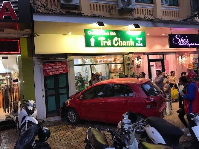 Theo nguyên nhân ban đầu cho biết, người điều khiển xe Toyota Yaris là một nữ tài xế. Do người phụ nữ này đạp nhầm chân ga nên khiến chiếc ô tô lao lên vỉa hè và tông vào cửa kính và tường của quán trà chanh.