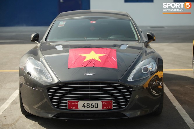 Phía bên ngoài SVĐ Al-Maktoum còn có sự hiện diện của chiếc Aston Martin Vantage V8 có giá 100.000 USD (2,31 tỉ đồng). Ảnh: Hiếu Lương.