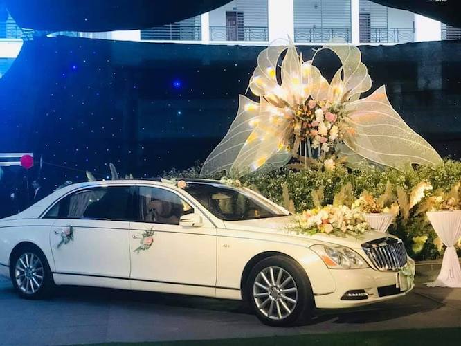 Chắc hẳn đây là đám cưới của “hội con nhà giàu” nên mới xuất hiện nhiều xế sang như vậy. Maybach 62S đóng vai trò quan trọng nhất vì được chú rể chọn làm xe rước dâu. Ở Việt Nam, dòng Maybach 62S có số lượng khá ít ỏi, vì chỉ có khoảng 5 chiếc màu trắng đang lăn bánh.