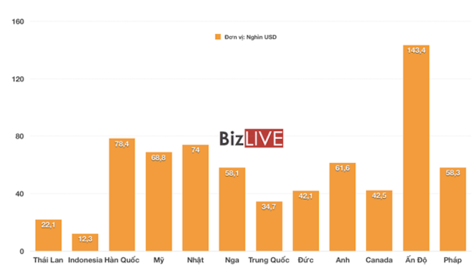Trái ngược với thị trường Indonesia và Thái Lan, Ấn Độ là quốc gia cung cấp những chiếc xe ô tô nhập khẩu đắt đỏ nhất về Việt Nam. Điều này thể hiện ở mức giá nhập khẩu trung bình lên tới 143,4 nghìn USD (tương đương 3,3 tỷ đồng).