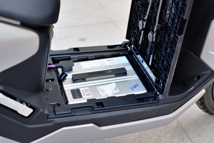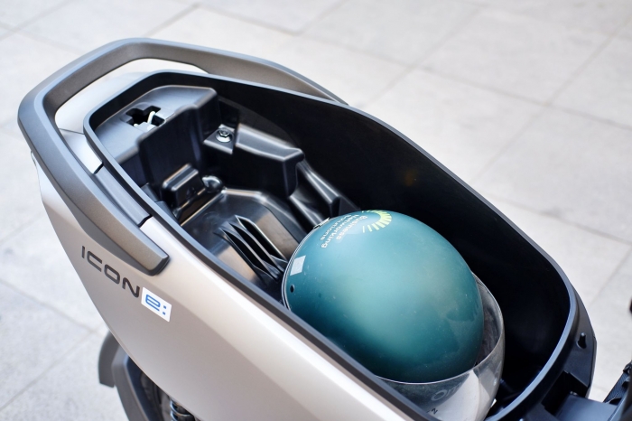 Anh Điệp cho biết thiết kế của Honda ICON e: nhỏ gọn, phù hợp di chuyển trong đô thị, hơn nữa cốp xe khá rộng đủ để đựng mũ bảo hiểm và một số đồ dùng cá nhân cần thiết. Đặc biệt là thiết kế pin của Honda ICON e có thể tháo rời dễ dàng khi anh muốn mang lên nhà để sạc.