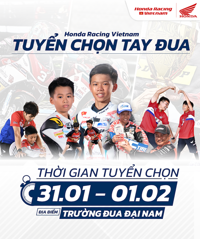 Từ danh sách gần 200 hồ sơ hợp lệ, Honda Racing Vietnam sẽ tiến hành vòng tuyển chọn trực tiếp vào ngày 31/01 và 01/02/2026 tại Trường đua Đại Nam. Buổi tuyển chọn sẽ có sự tham gia đánh giá của đội ngũ chuyên gia và huấn luyện viên đến từ Nhật Bản, phối hợp cùng các thành viên giàu kinh nghiệm của Honda Racing Vietnam.