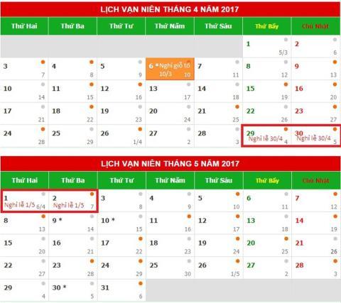 Lịch nghỉ lễ giỗ Tổ Hùng Vương, 30/4, 1/5 của người lao động.