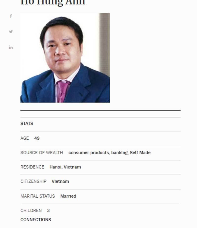 Ông Hồ Hùng Anh được xem là còn giàu hơn cả ông Nguyễn Đăng Quang với khối tài sản có thể lên tới khoảng 1,8 tỷ USD.