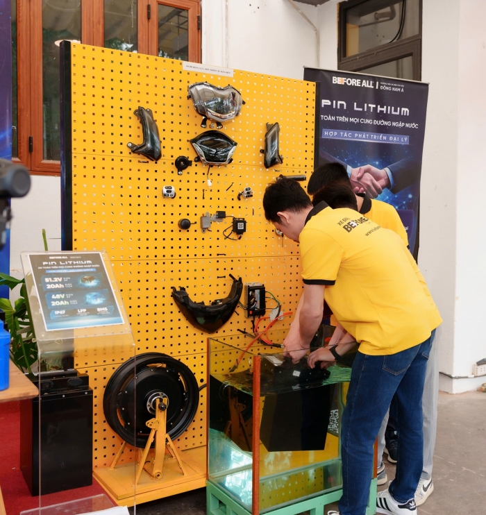 Một màn thử nghiệm pin xe điện bị ngâm trực tiếp trong nước nhưng vẫn hoạt động bình thường đang thu hút sự chú ý tại một workshop công nghệ ở Hà Nội.