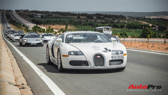 Bugatti Veyron là siêu xe đáng chú ý nhất trong đoàn của năm ngoái. Chiếc xe trị giá hơn 40 tỷ đồng lần đầu tiên được thoả sức chạy hàng ngàn km sau nhiều năm chỉ nằm trong garage. Giá trị cao, động cơ lại siêu lớn nên chiếc xe cũng khá khó chiều. Sau hơn 2.000 km, chiếc Veyron được đưa từ Hà Nội vào TP. HCM bằng xe chuyên dụng để thực hiện bảo dưỡng theo quy trình của hãng. Được biết, chi phí cho toàn bộ lần bảo dưỡng đó tiêu tổn khoảng 1,8 tỷ đồng, những công đoạn bao gồm thay dầu máy, thay 4 lốp xe,...