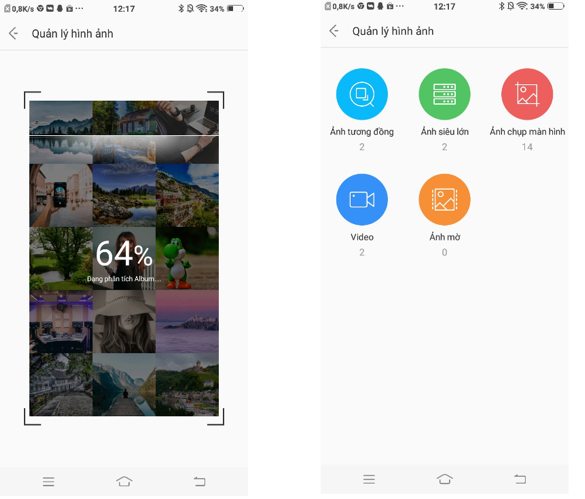 Chỉ một nút chạm nhanh gọn bạn có thể phân tích cả ngàn tấm hình trên điện thoại thành các album tiện lợi như: ảnh tương đồng, ảnh siêu lớn, ảnh chụp màn hình, ảnh mờ và video và cả file nhạc. Bạn cũng có thể nén & giảm kích thước ảnh quá lớn mà không lo làm mờ. Do đó, với cách sắp xếp thông minh này phần mềm sẽ giúp bạn dễ dàng xóa bớt ảnh chất lượng thấp để có một bộ siêu tập hoàn hảo. Đồng thời dọn dẹp không gian, tăng thêm bộ nhớ cho bạn thoải mái selfie.