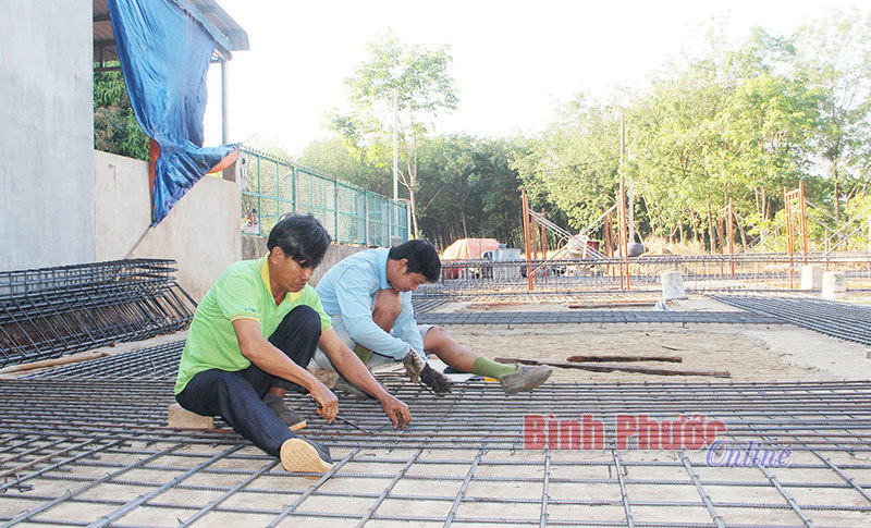 Thợ xây đang làm phần móng một căn nhà yến mới tại xã Bù Nho, huyện Phú Riềng
