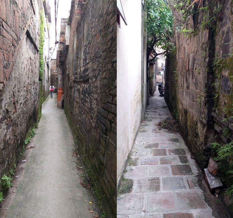 Trong con ngõ này, 2 người đi bộ có thể tránh nhau nhưng xe máy thì không.