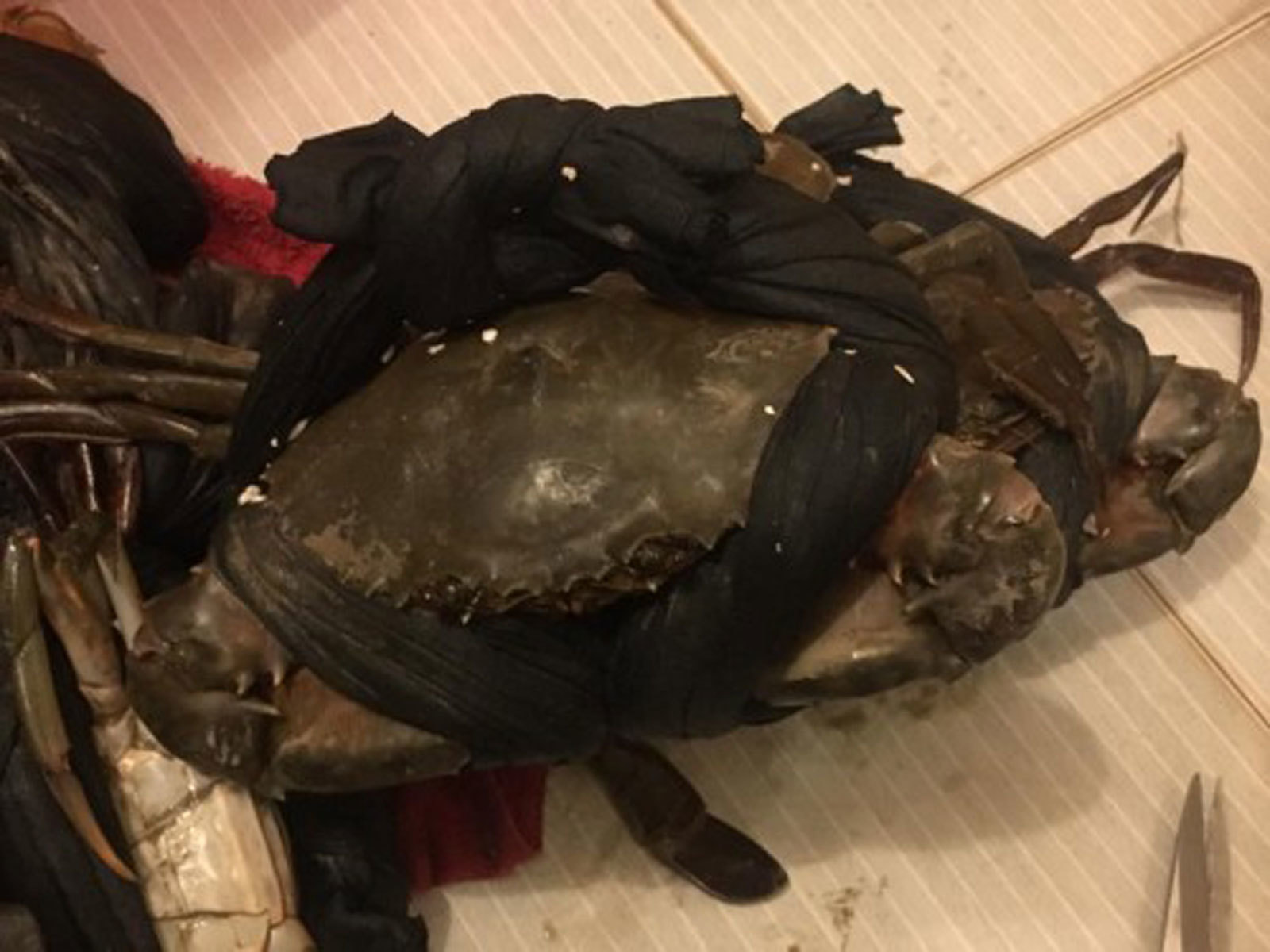 Chiêu trò buộc cua biển bằng dây vải, bằng nilon thấm nước để ăn gian trọng lượng không phải là câu chuyện mới cho kiểu buôn bán gian lận.