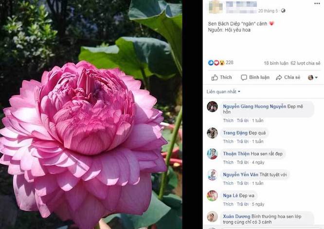 Ngay sau khi xuất hiện hình ảnh hoa sen ngàn cánh hiếm có này, trên mạng xã hội, nhiều người chia sẻ hình ảnh loại hoa hiếm có này và truy lùng, xin địa chỉ tìm mua giống về trồng. Song, không ai biết loại sen 1.000 cánh này có nguồn gốc từ đâu. Một số thành viên đoán rằng loài sen này chắc không có ở Việt Nam.