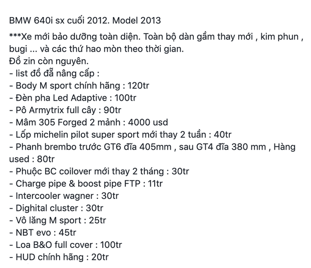 Một số hình ảnh BMW 640i đang được rao bán.