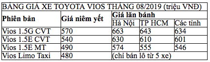 Toyota Vios là mẫu xe hạng B dành cho cá nhân và gia đình của hãng Toyota. Mẫu xe này hiện đang dẫn đầu về doanh số tại thị trường ô tô Việt Nam với 12.451 xe bán ra trong 6 tháng đầu năm 2018. Nổi tiếng với giá cả rẻ nhất, kích thước gọn gàng, giúp di chuyển linh hoạt ngay cả trong phố đông, khả năng tiêu hao nhiên liệu đáng mơ ước (chỉ 5,8 lít/100km). Tháng 8/2018, bản Vios nâng cấp ra mắt với ngoại thất bắt mắt hơn, nội thất tiện nghi đầy đủ hơn với chìa khoá khởi động thông minh, đầu DVD, cân bằng điện tử, hỗ trợ khởi hành ngang dốc, kiểm soát lực kéo... Hệ thống an toàn cũng được gia tăng lên 7 túi khí.