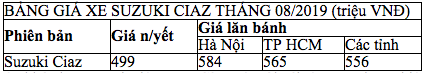Mẫu sedan hạng B của Suzuki chính thức được giới thiệu đến thị trường Việt nam vào cuối năm 2016. Xe sử dụng động cơ 1.4 lít, hộp số tự động 4 cấp, kích thước xe Dài x Rộng x Cao : 4.490 x 1.730 x 1.475 mm, chiều dài cơ sở 2650mm tức là nhỉnh hơn Toyota Vios một chút. Đánh giá khách quan Suzuki Ciaz thì ngoại hình ngoại hình khá bắt mắt, ưu điểm cải tiến về nội thất ghế da, camera lùi, hộp tỳ tay xe vận hành ổn và ưu điểm lớn là giá hợp lý cho chiếc xe nhập full option theo xe.