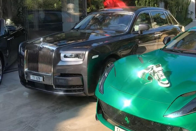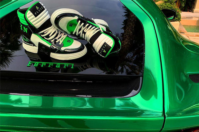 Bộ sưu tập của Plein toàn là siêu xe hàng hiếm và đắt tiền như Lamborghini Urus, Rolls-Royce Cullinan hay Ferrari 812 Superfast. Trong đó hình ảnh được cho là truỵ lạc của Plein trên Instagram là chiếc Ferrari 812 Superfast.