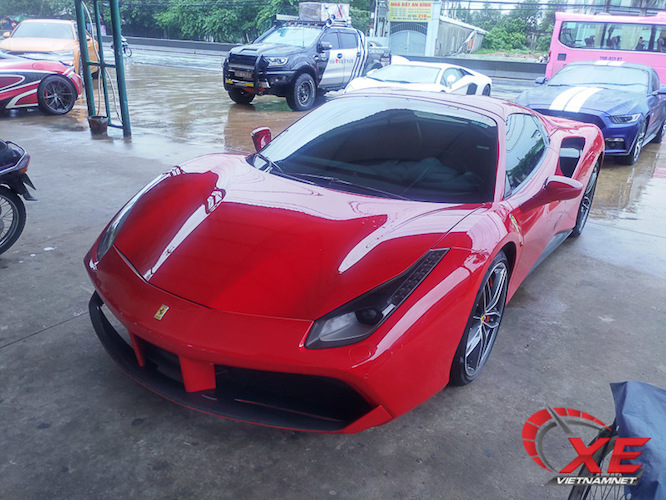 Tiếp đến là Ferrari 488 GTB màu đỏ nổi bật rực rỡ. Đây cũng là cái tên rất được ưa chuộng tại Việt Nam. Từ Cường Đô la, Tuấn Hưng cho tới Phan Thành đều từng sở hữu siêu xe này. Trang bị sức mạnh trên Ferrari 488 GTB là khối động cơ tăng áp thay tho loại động cơ hút khí tự nhiên. Nhờ đó mà xe đạt công suất cực đại 661 mã lực, mô-men xoắn cực đại 760 Nm. Giá bán Ferrari 488 GTB tại thị trường Việt Nam rơi vào khoảng 15 tỷ đồng.