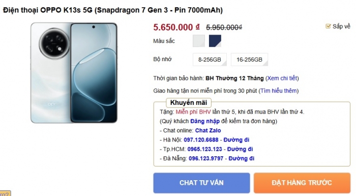 - OPPO K13s - 8/256GB: 5.65 triệu đồng