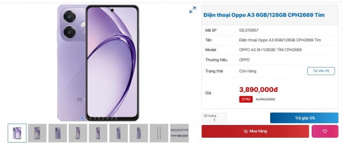 Giữa tháng 10/2025, OPPO A3 5G có giá bán chỉ từ 3.89 triệu đồng. Mức giá này thuộc nhóm gần như rẻ nhất của thị trường smartphone.