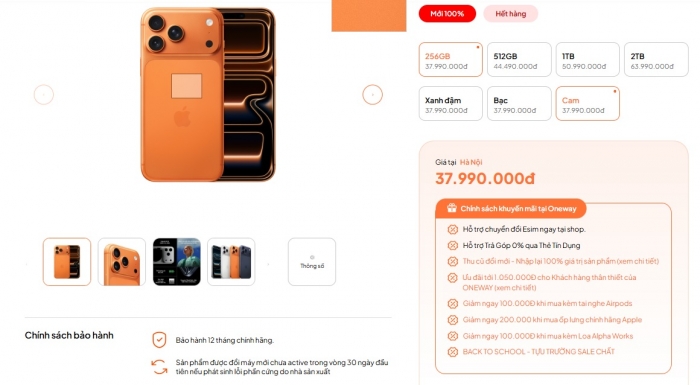 - iPhone 17 Pro Max - 256GB: 37.99 triệu đồng;