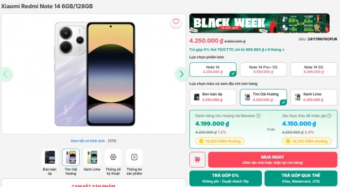 Tại thời điểm tháng 11, Redmi Note 14 5G tiếp tục giảm sâu dưới 4.25 triệu cho bản tiêu chuẩn. Mức giá này vừa vặn để trở thành máy giá rẻ nhưng trang bị vẫn là smartphone cấp độ tầm trung.