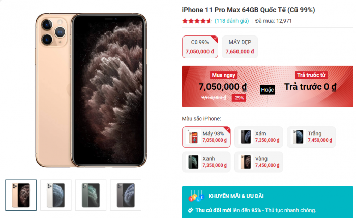 • iPhone 11 Pro Max - 64GB: 7.05 triệu đồng;