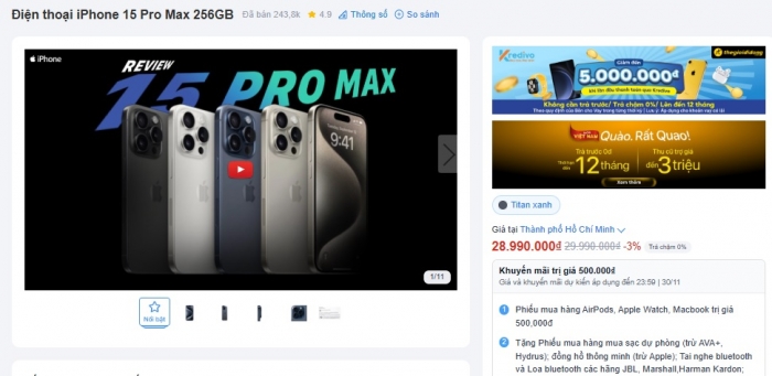 Trong khi đó, iPhone 15 Pro Max cũ phong phú về lựa chọn hơn với giá từ 19.9 triệu đồng cho bản 256GB và 22.49 triệu đồng cho bản 512GB.
