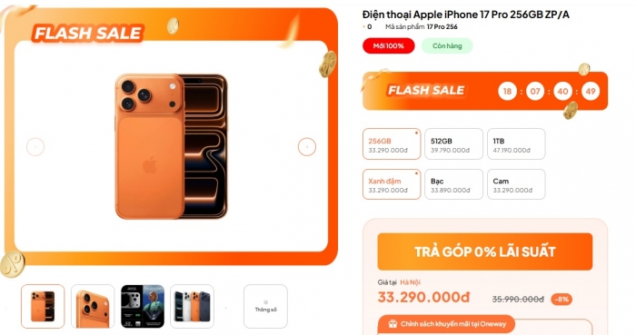 - iPhone 17 Pro - 256GB: 32.29 triệu