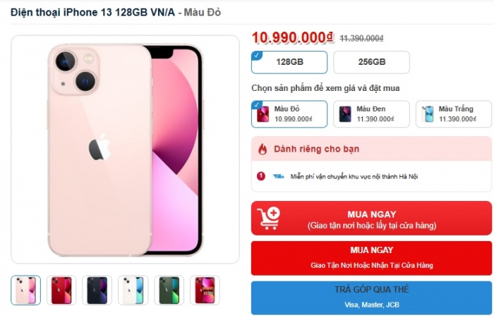 iPhone 13 giá thấp nhất hiện chỉ từ 10.9 triệu đồng cho phiên bản 128 GB. Đây cũng là bản duy nhất còn hàng. Tuy không thể mạnh như iPhone 17 nhưng các tính năng cơ bản thì iPhone 13 vẫn làm rất tốt, thậm chí không ngán bất cứ ứng dụng nào.
