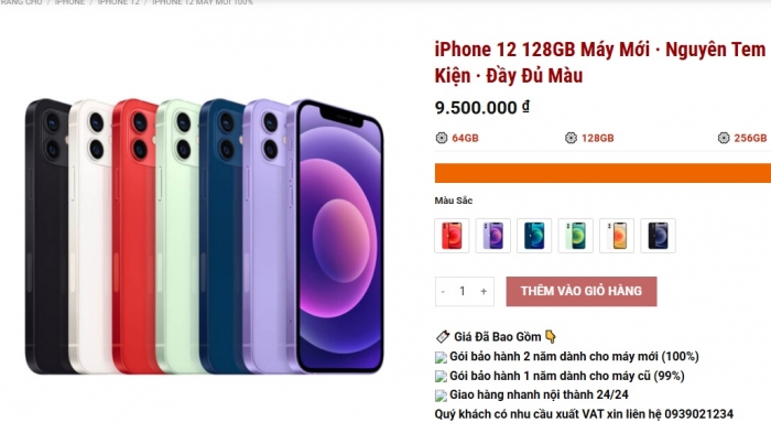 Tại thời điểm tháng 12, giá iPhone 12 mới hiện ở mức 9.5 triệu đồng cho bản 128GB nhưng khá hiếm. Bản 64GB sẵn hàng hơn ở mức giá xấp xỉ 9 triệu đồng. Bên cạnh hàng mới, hàng cũ có mức giá rẻ hơn tới một nửa từ 5.6-6.7 triệu đồng cho dung lượng 64 và 128GB.