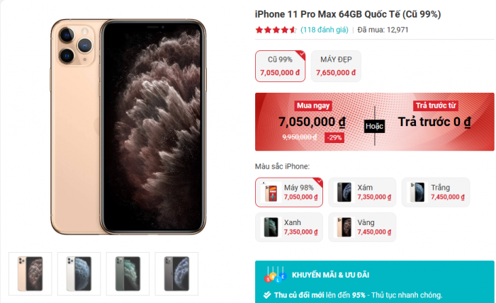- iPhone 11 Pro Max - 64GB: 7.05 triệu đồng;