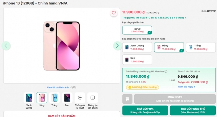 Hiện tại với giá chỉ từ 11.9 triệu đồng hoặc thấp hơn nữa là khách Việt có thể đập hộp bản 128 GB. Đây cũng là bản duy nhất còn hàng. Tuy không thể mạnh như iPhone 17 nhưng các tính năng cơ bản thì iPhone 13 vẫn làm rất tốt, thậm chí không ngán bất cứ ứng dụng nào.