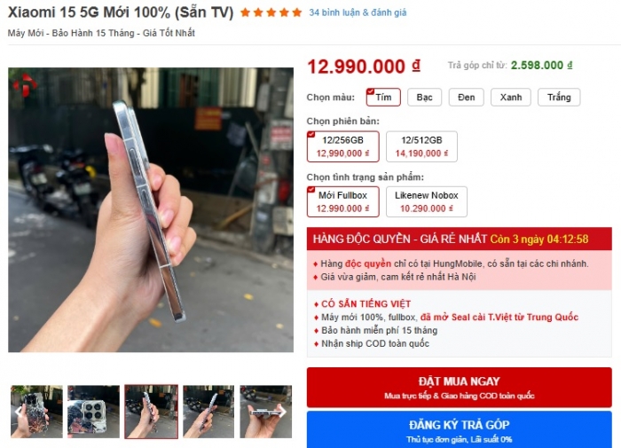 Đầu năm 2026, khách Việt có thể đập hộp Xiaomi 15 với giá chỉ 17.59 triệu đồng với tùy chọn 12GB RAM và bộ nhớ 256GB. Mức giá này ngang với smartphone tầm trung.