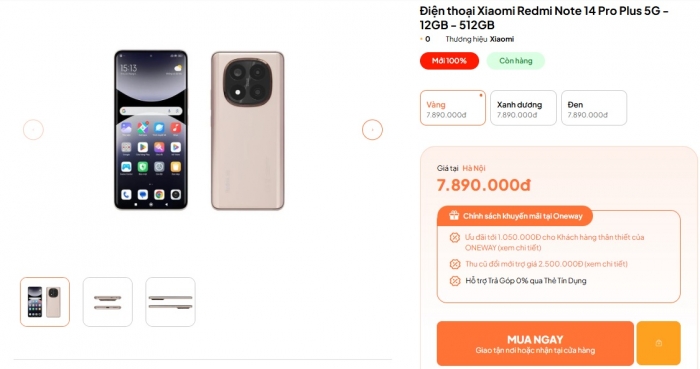 Khảo sát dịp đầu năm mới 2025 cho thấy, Redmi Note 14 Pro Plus vẫn còn sót khá nhiều bản 512GB tại các đại lý với mức giá rẻ kỷ lục từ 7.8 triệu đồng. Đây được xem là chiếc smartphone tầm trung bộ nhớ 512GB rẻ nhất tại Việt Nam. Nó thậm chí rẻ hơn cả iPhone 11 64GB bán mới ở mức 8.5 triệu đồng.