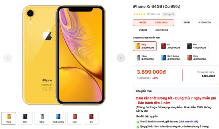 - iPhone XR - 128GB: 3.9 triệu đồng.