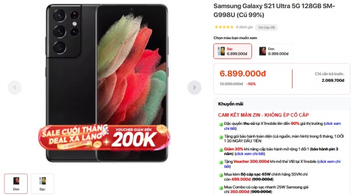 Cụ thể, cuối tháng 3/2026, nếu mua Galaxy S21 Ultra, khách Việt có thể chỉ phải bỏ ra số tiền hơn 6 triệu đồng. Nếu thực sự đam mê nhiếp ảnh, mức giá này cũng không hề tồi. Thậm chí người dùng cũng được hưởng lợi với màn hình Dynamic Amoled 2X siêu chất lượng vẫn đang dùng trên Galaxy S26 cao cấp.