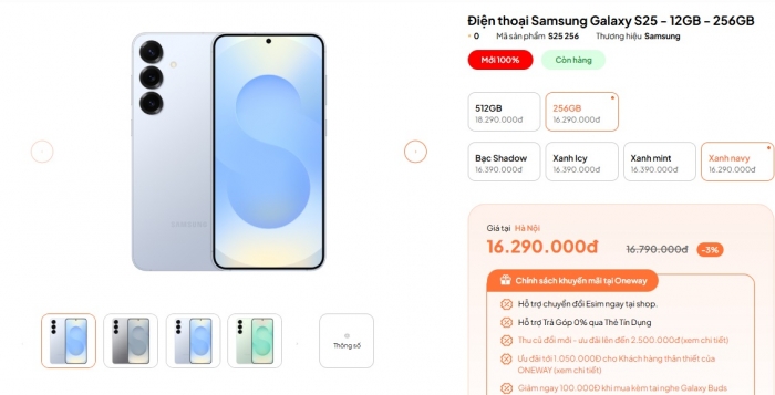 Tại thời diểm giữa tháng 3, Galaxy S25 hiện có giá bán chỉ từ 16.29 triệu đồng. Mức giá này vẫn rẻ hơn con số 17.99 triệu đồng của iPhone 17e. Tuy nhiên Galaxy S25 mạnh hơn hẳn về mặt công nghệ.