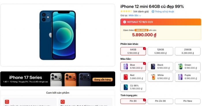 iPhone 12 Mini cũ hiện đang khá sẵn hàng tại Việt Nam giữa tháng 3/2026 và sở hữu nhiều trang bị tốt đủ dùng và có cả nhưng trang bị vượt trội iPhone 17e mới.
