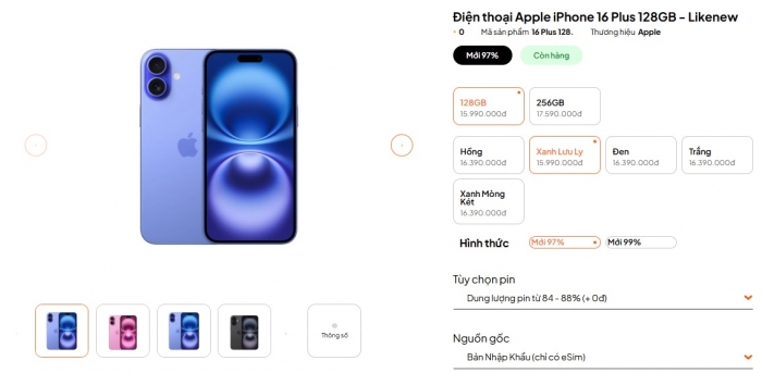 Cũng chính vì vậy mà iPhone 16 Plus hiện được săn đón nhiều ngay cả khi là máy cũ. Cụ thể, giữa tháng 3/2026, giá iPhone 16 Plus cũ hiện chỉ từ 15.9 triệu đồng với bản 128GB. Bản 256GB đắt hơn khoảng 1 triệu đồng. Mức giá này rẻ hơn 6 triệu so với mua mới.