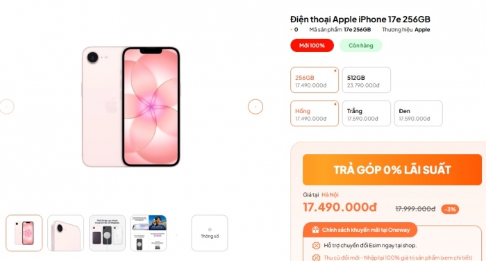 Tuy nhiên theo ghi nhận trên thị trường nhiều địa lý bán ra iPhone 17e với giá thấp hơn 200-300 nghìn đồng so với niêm yết. Đáng chú ý, một số người dùng tại thời điểm mở bán đã săn được mã giảm giá để sở hữu iPhone 17e với giá từ 15.79 triệu đồng. Dự kiến nếu có chương trình mua kèm gói cước, iPhone 17e sẽ còn có thể thấp hơn nữa và thực sự là mẫu iPhone quốc dân đáng gờm.