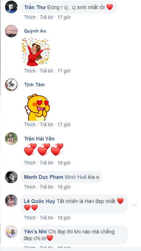 Sau khi được đăng tải, bức ảnh đã nhanh chóng thu hút được lượng tương tác “khủng” từ người hâm mộ. Đa phần mọi người đều đồng ý với dòng trạng thái của Hari Won và khen ngợi nhan sắc xinh đẹp của nữ ca sĩ.