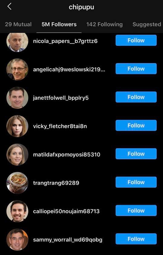 Cụ thể, cộng đồng mạng cho rằng Chi Pu đã dùng thủ thuật tăng “follow ảo” để đưa tài khoản Instagram của mình vượt qua Ngọc Trinh và bám đuổi Sơn Tùng M-TP sát nút. Bằng chứng mà các cư dân mạng đưa ra là trong số người theo dõi Chi Pu, có rất nhiều tài khoản ảo với cách đặt tên tương tự nhau. Đa số những tài khoản này sử dụng hình ảnh nước nước ngoài làm ảnh đại diện. Không chỉ có vậy, những tài khoản này còn có điểm đáng nghi là đều không có bất cứ bài đăng nào hoặc để chế độ hiển thị riêng tư.