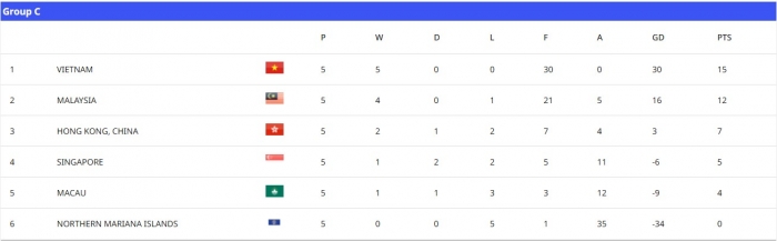 U17 Việt Nam dễ dàng có chiến thắng với tỉ số 4-0 để độc chiếm ngôi đầu bảng C với 15 điểm tuyệt đối. Không những vậy, các học trò của HLV Cristiano Roland sở hữu thành tích rất ấn tượng với 30 bàn thắng và không để thủng lưới bất kỳ bàn nào.